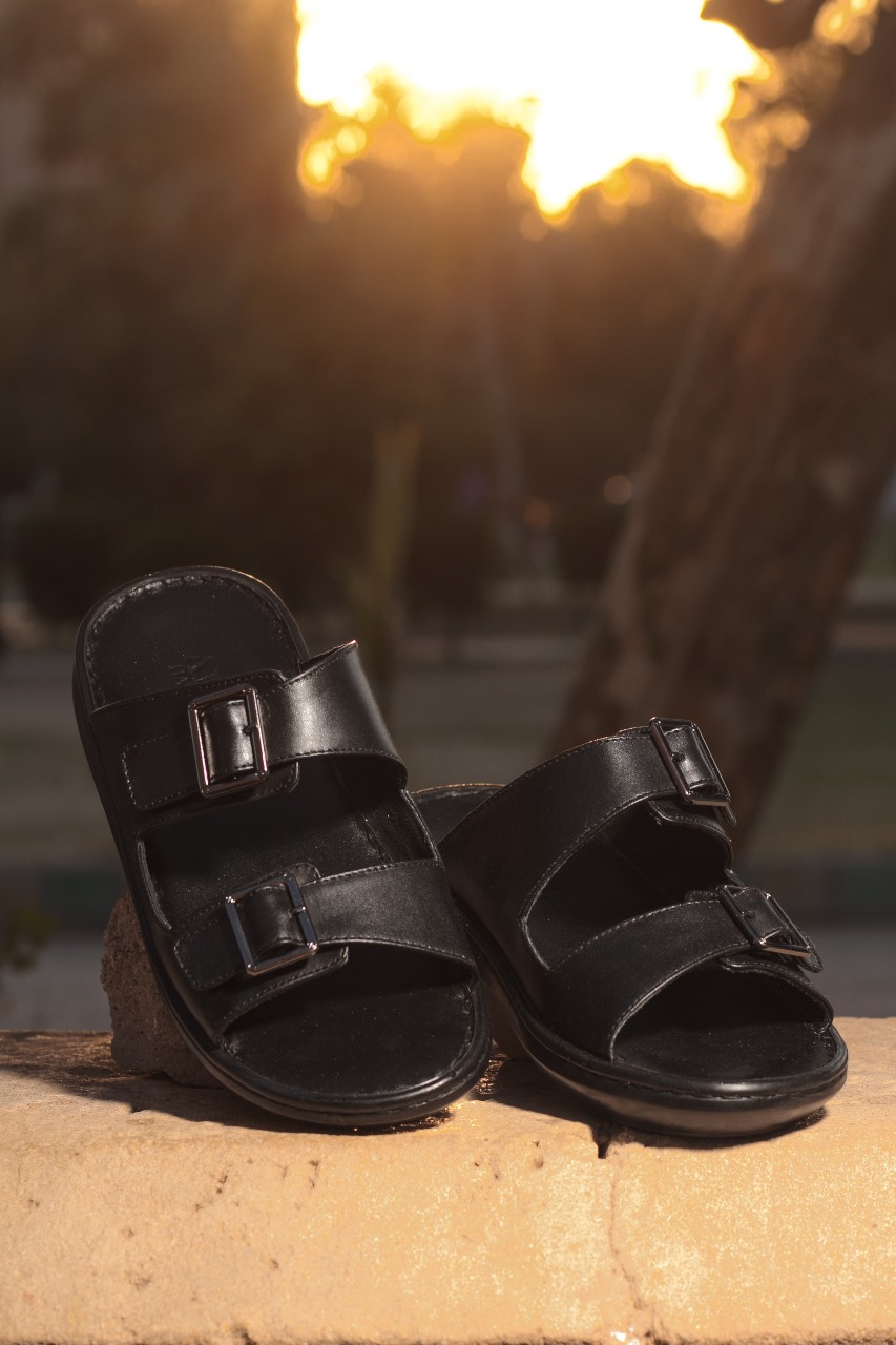 A timeless black leather slipper, handcrafted with premium materials, offering superior comfort and durability.